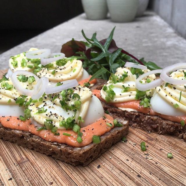 Æggemad / En skive brød med æg som pålæg.
