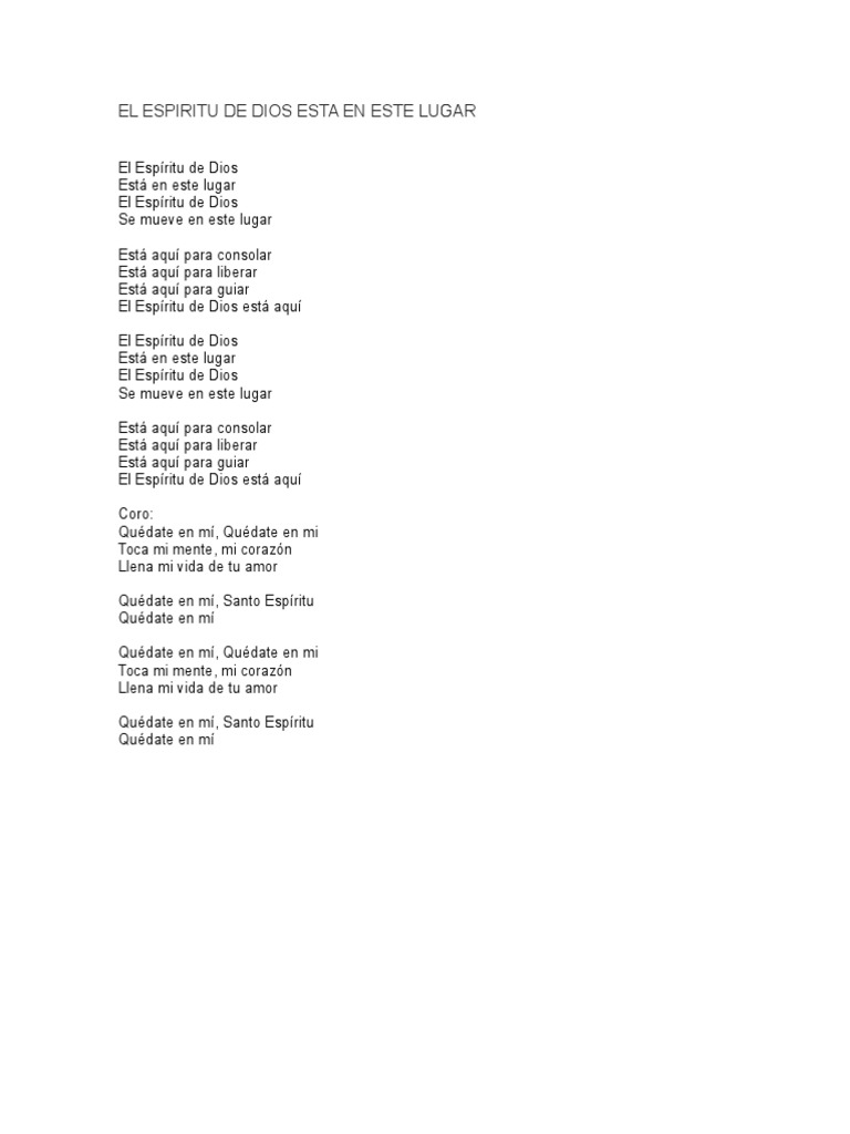 El Espiritu De Dios Esta En Este Lugar Lyrics / These lyrics are waiting for review.