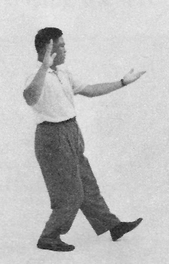High Pat On Horse - Typically at the end of the posture the left hand is in a palm looking up at dan tian height, while right hand is held at shoulder height, with the arma almost fully extended.