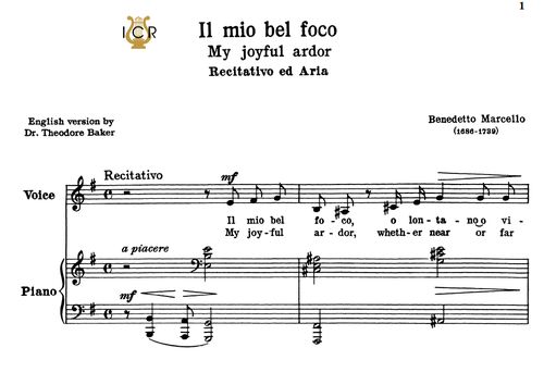Il Mio Bel Foco Quella Fiamma High Voice In B Flat Minor B Marcello Caecilia Ed E se il fato a voi mi rende, vaghi rai del mio bel sole, altra luce ella non vuole nè voler giammai potrà.